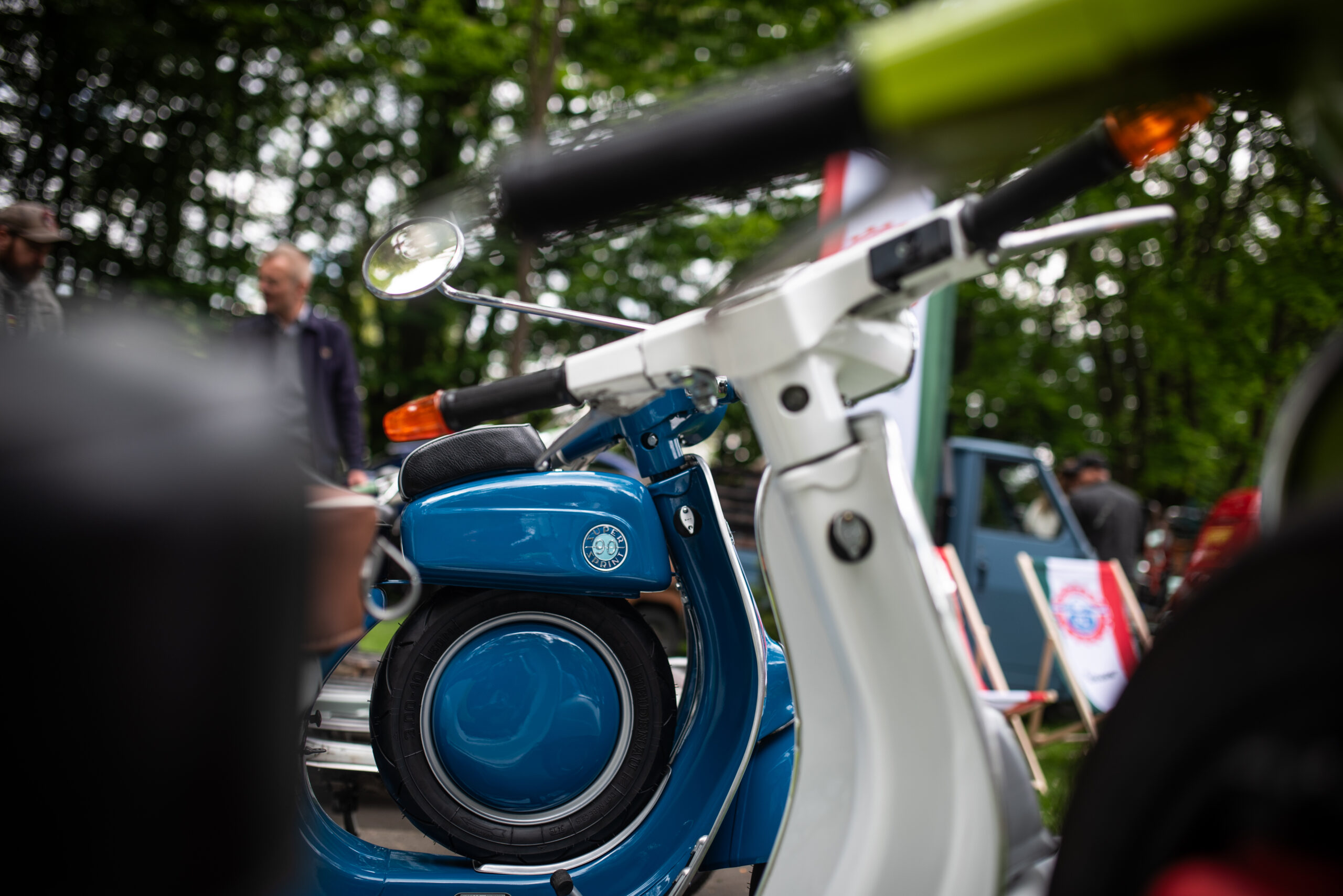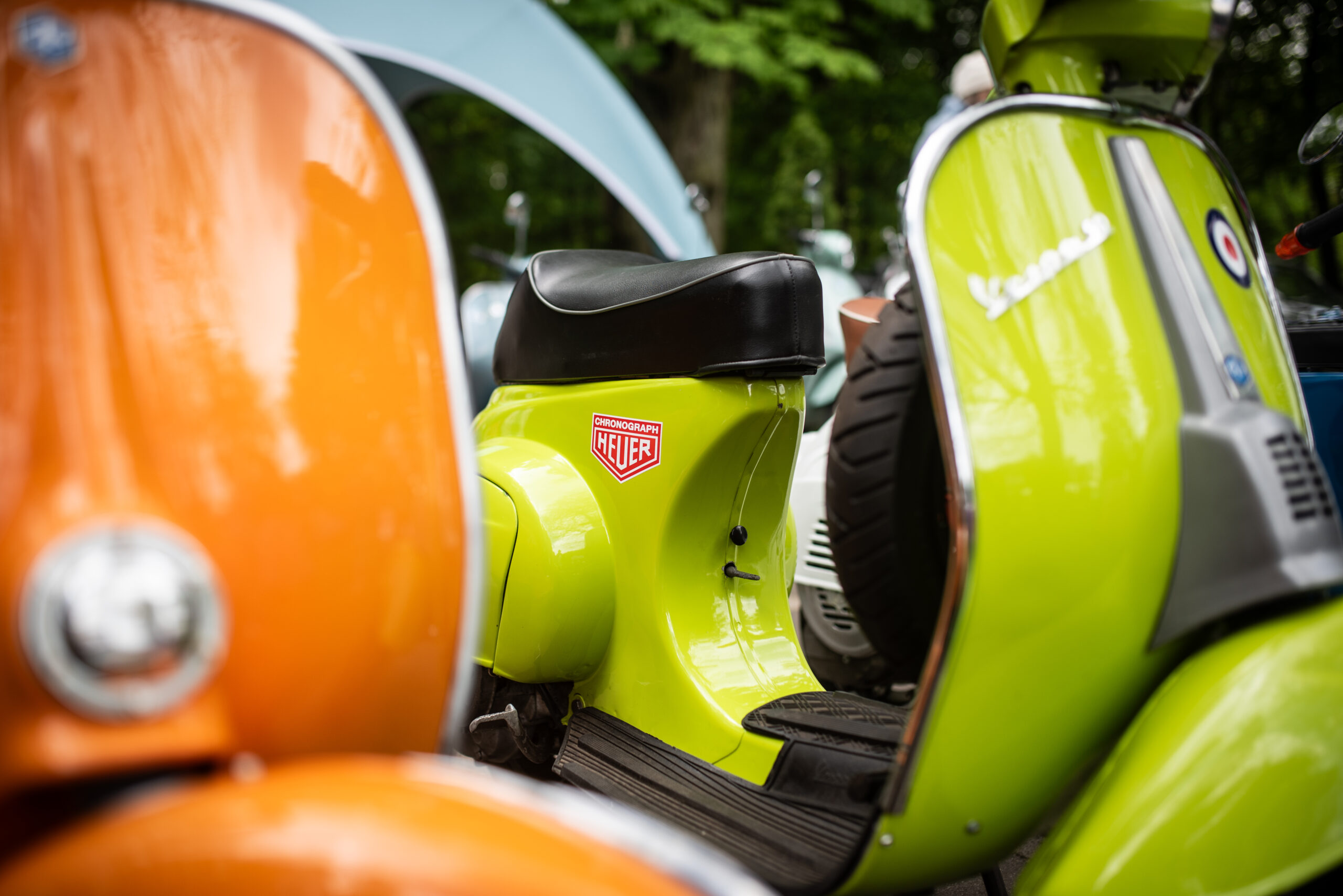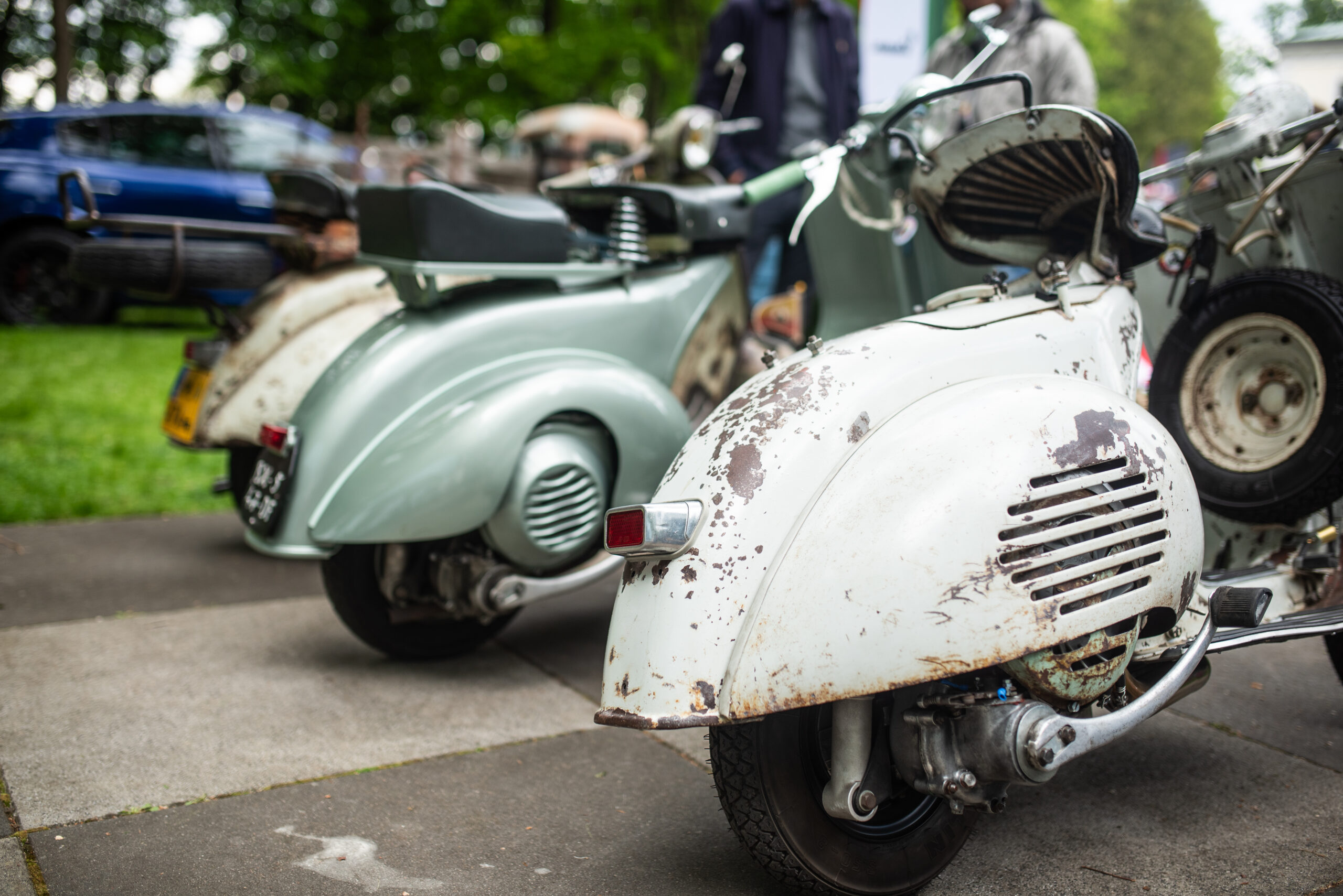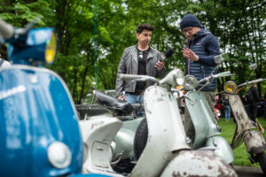 Dodatkowo mogliśmy podziwiać szeroką gamę klasycznych pięćdziesiątek, w tym także świeżo odnowioną pomarańczkę Vespę V50 naszego klubowicza Tamulla, który dba o każdy detal pojazdu. Ekipa Warszawskiej Vespy podstawiła Jackową perełkę VBB oraz świeży Andrzejowy nabytek w oryginalnym stanie GT 125 – obie sztuki z 1963/64 roku.