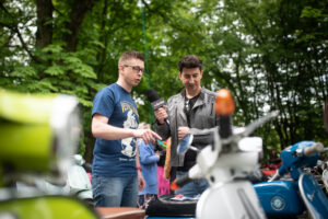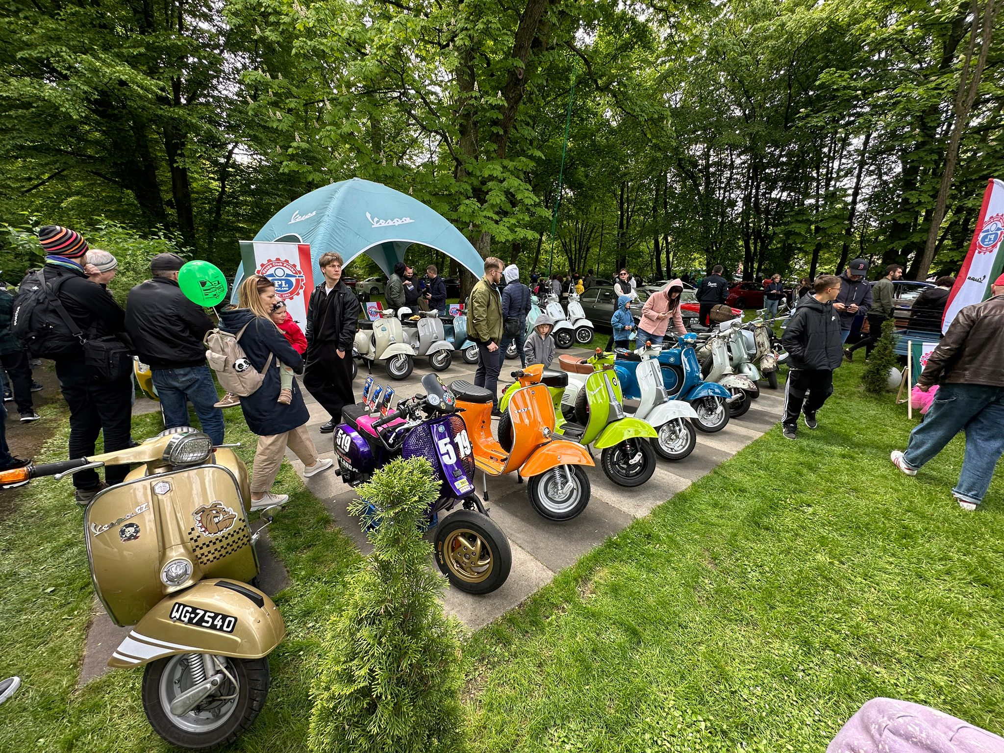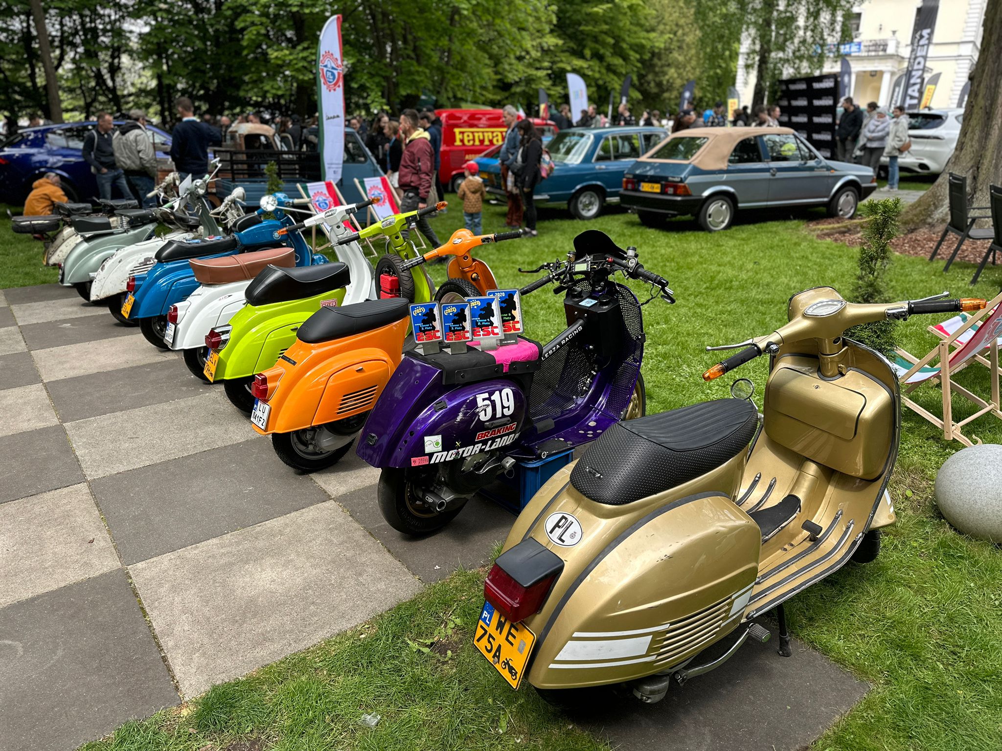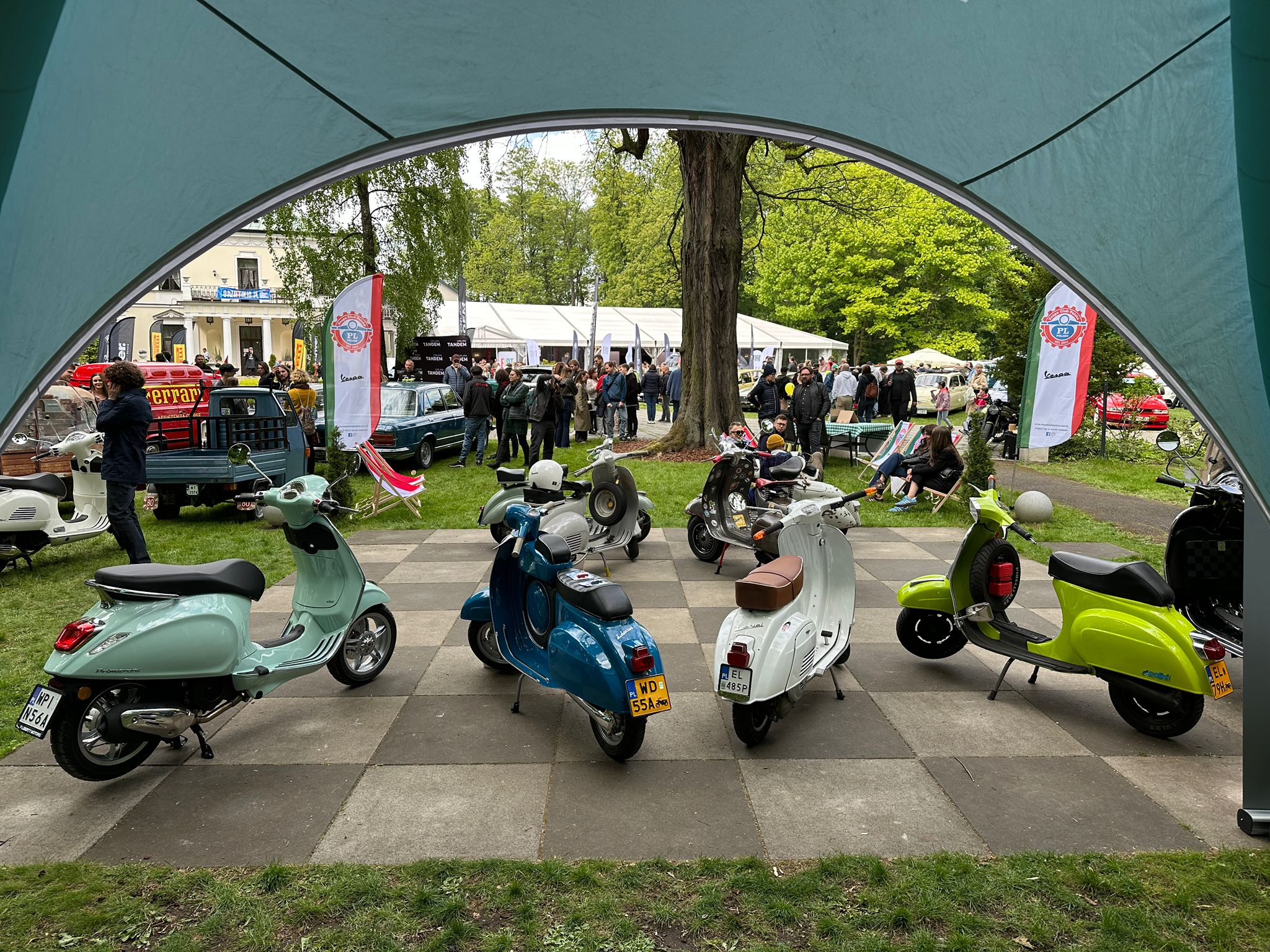 Od godziny 10:00 teren wokół Pałacu Rozalin zaczął się wypełniać tłumem publiczności. Zainteresowanie naszym różnorodnym i kolorowym stoiskiem było znaczące. Było to świetna okazja do wielu ciekawych rozmów i zainteresowania gości tematyką naszych włoskich skuterów. Przygotowana strefa chilloutu w postaci leżaków okazała się strzałem w dziesiątkę!
