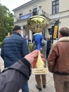 Łukasz w ręku trzymał Puchar Klubu Zlotu ForzaItalia.pl 2025, który wygraliśmy jako Vespa Club Polska!