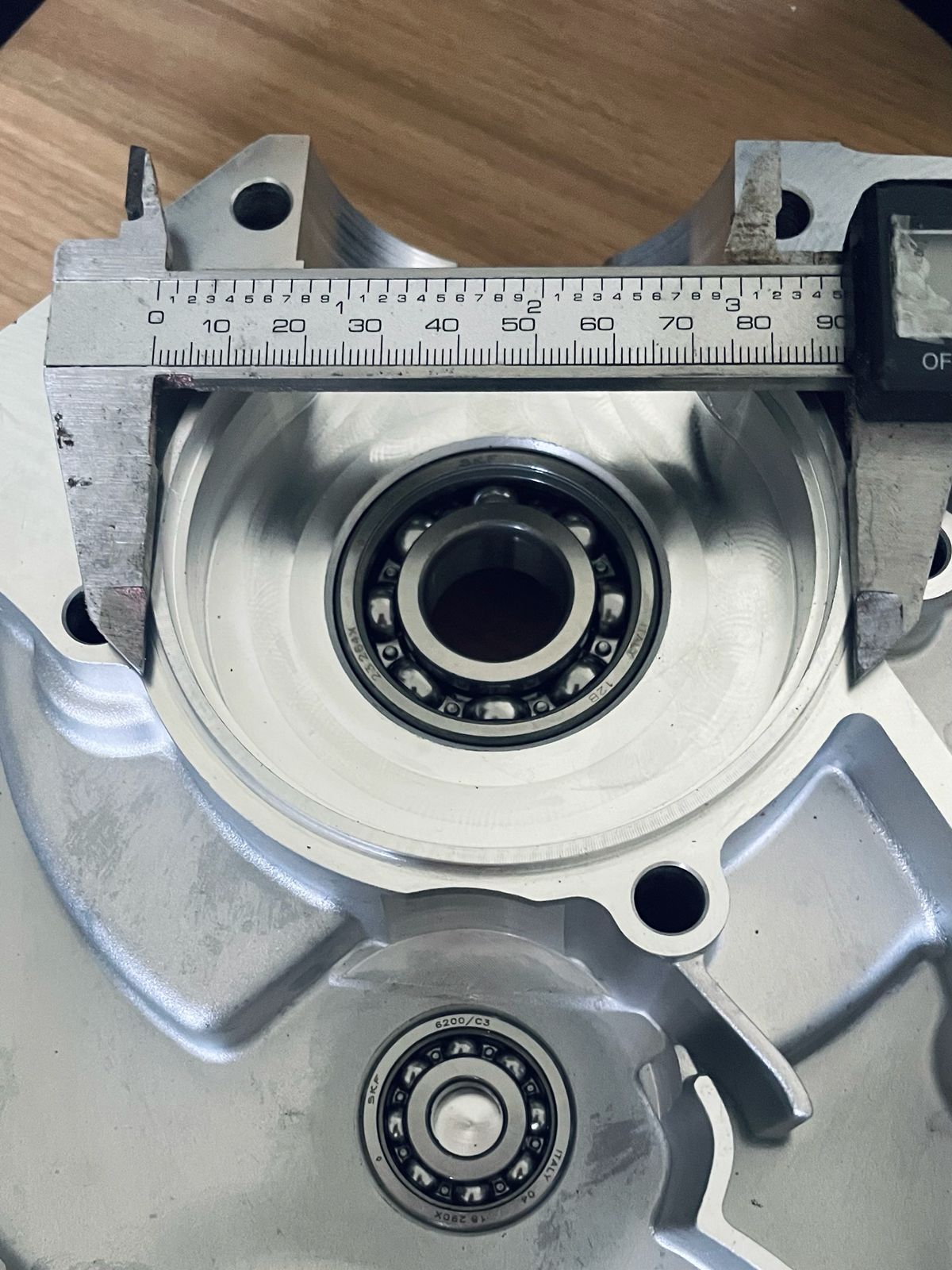 Po uzbrojeniu karterów w nowe łożyska i uszczelniacze spotkałem się z pierwszym problemem. Średnica korby była większa niż miejsce w karterze na jego osadzenie. Okazało się, że karter SIP Evo występuje w 3 wersjach uzależnionych od długości wału. Zamawiając swój karter skusiłem się ceną, będąc przekonany że wszystko będzie PnP jak mawiał producent. Z pomocą przyszedł zaprzyjaźniony specjalista od obrabiarek CNC, który poszerzył kartery. Przymierzając wał musiałem jeszcze delikatnie podfrezować krawędzie, dając miejsce dla swobodnej pracy korbowodu, w ruch poszedł dremel którym delikatnie skrawałem krawędzie do uzyskania pożądanego kształtu. Dla świętego spokoju, na przyszłość wolałbym od razu kupić karter przygotowany pod długi wał, umożliwiający zamontowanie pojemności 187cc, gdyż nakład pracy z pewnością przewyższył drobne różnice w cenie.