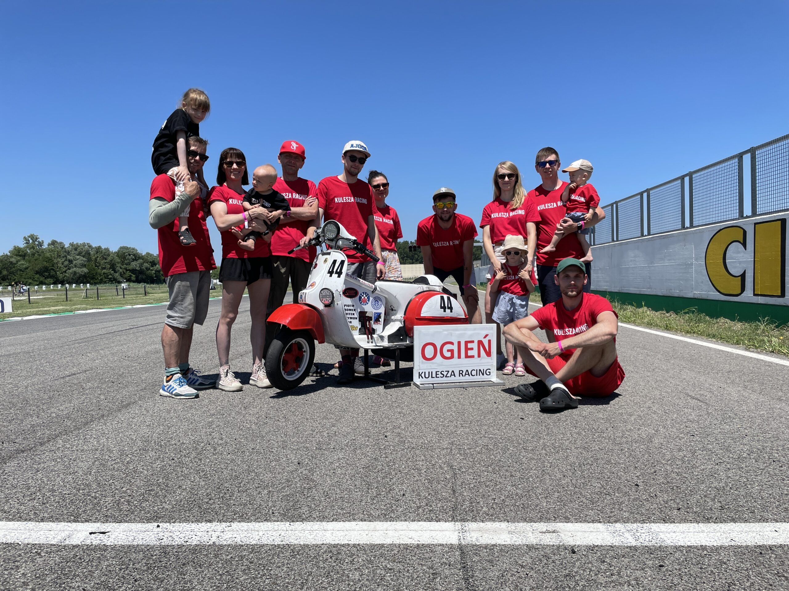 Muszę w tym miejscu wspomnieć również o koledze, bez pomocy którego mielibyśmy duży problem ze zorganizowaniem się podczas całego wyścigu. Mateusz „LUDI” Ludwikowski z PVRT wziął na siebie ciężar komunikacji z kierowcami na torze, przez znakomitą większość czasu obsługując naszą tablicę informacyjną (pomagał też czasem w tankowaniu skutera). Pojechał z nami do Włoch „ w ramach rekonwalescencji” po zabiegu chirurgicznym nogi, co nie pomagało mu zbytnio w realizacji tak ważnego zadania. Dzięki Ludi – wykonałeś dla nas kawał niezastąpionej pracy!